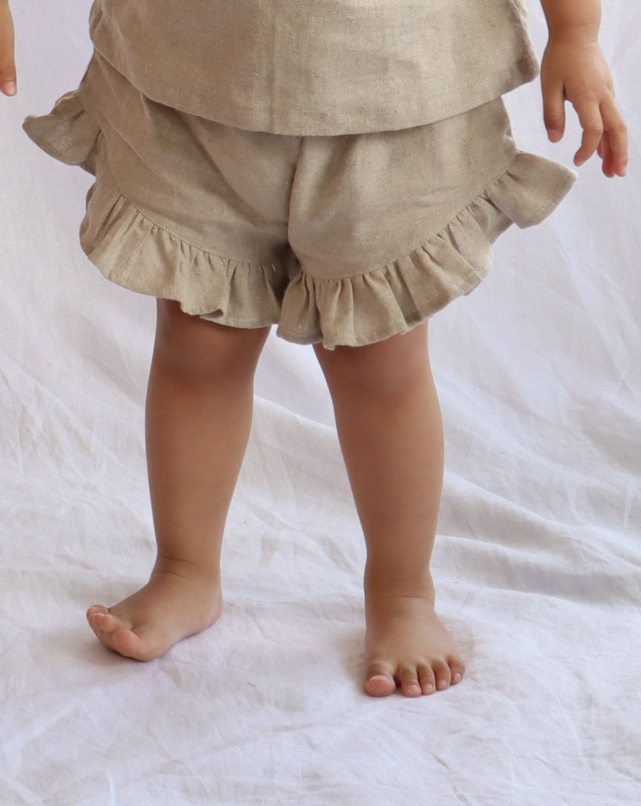 Feminine and fun lightweight linen cotton blend frilled shorts.