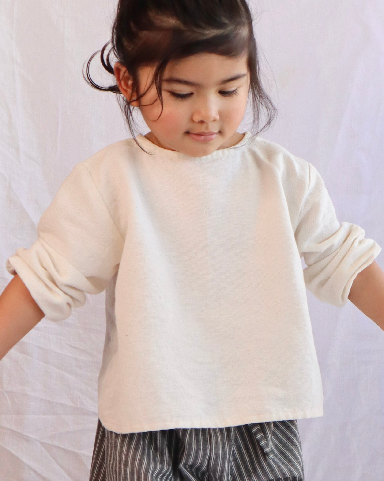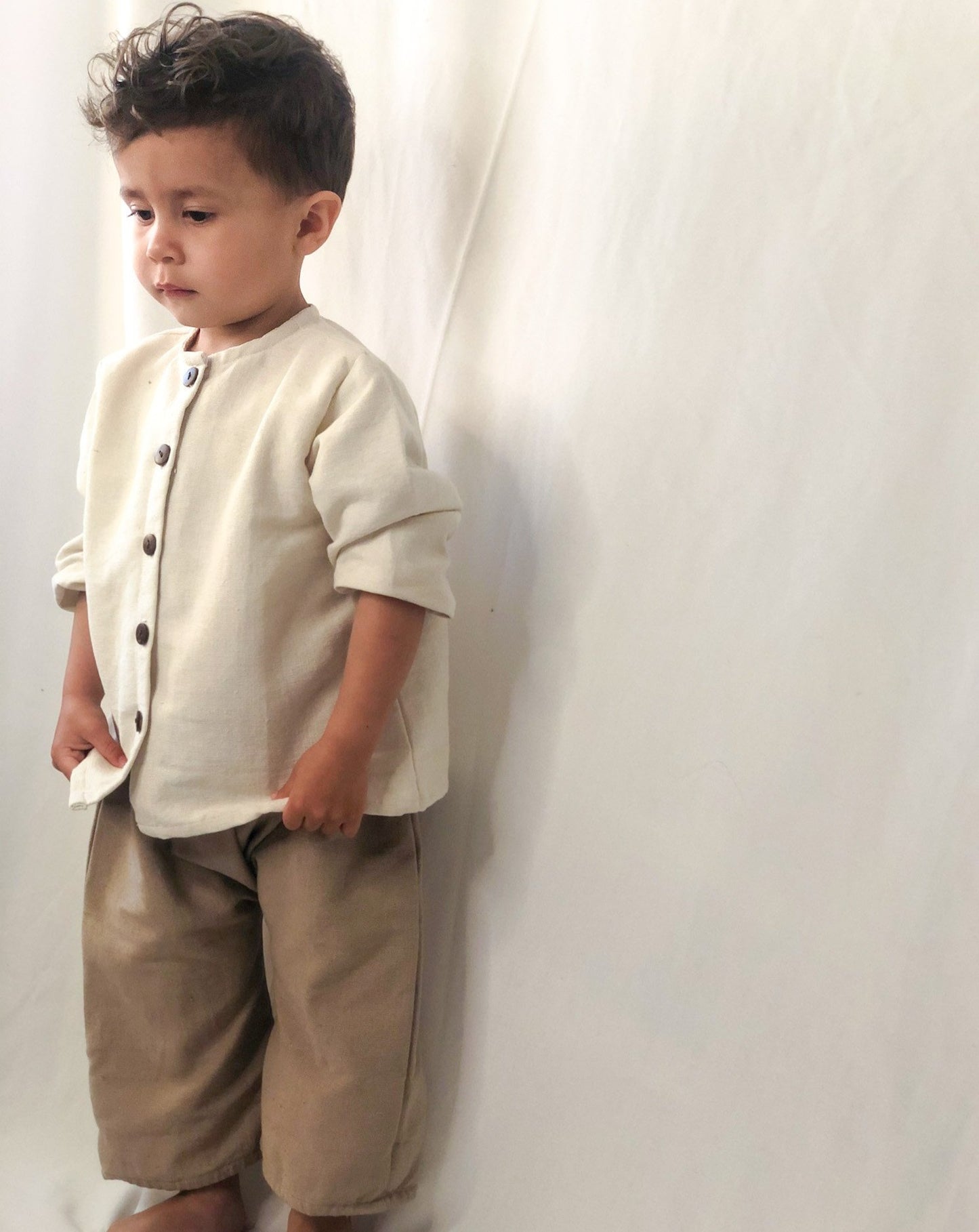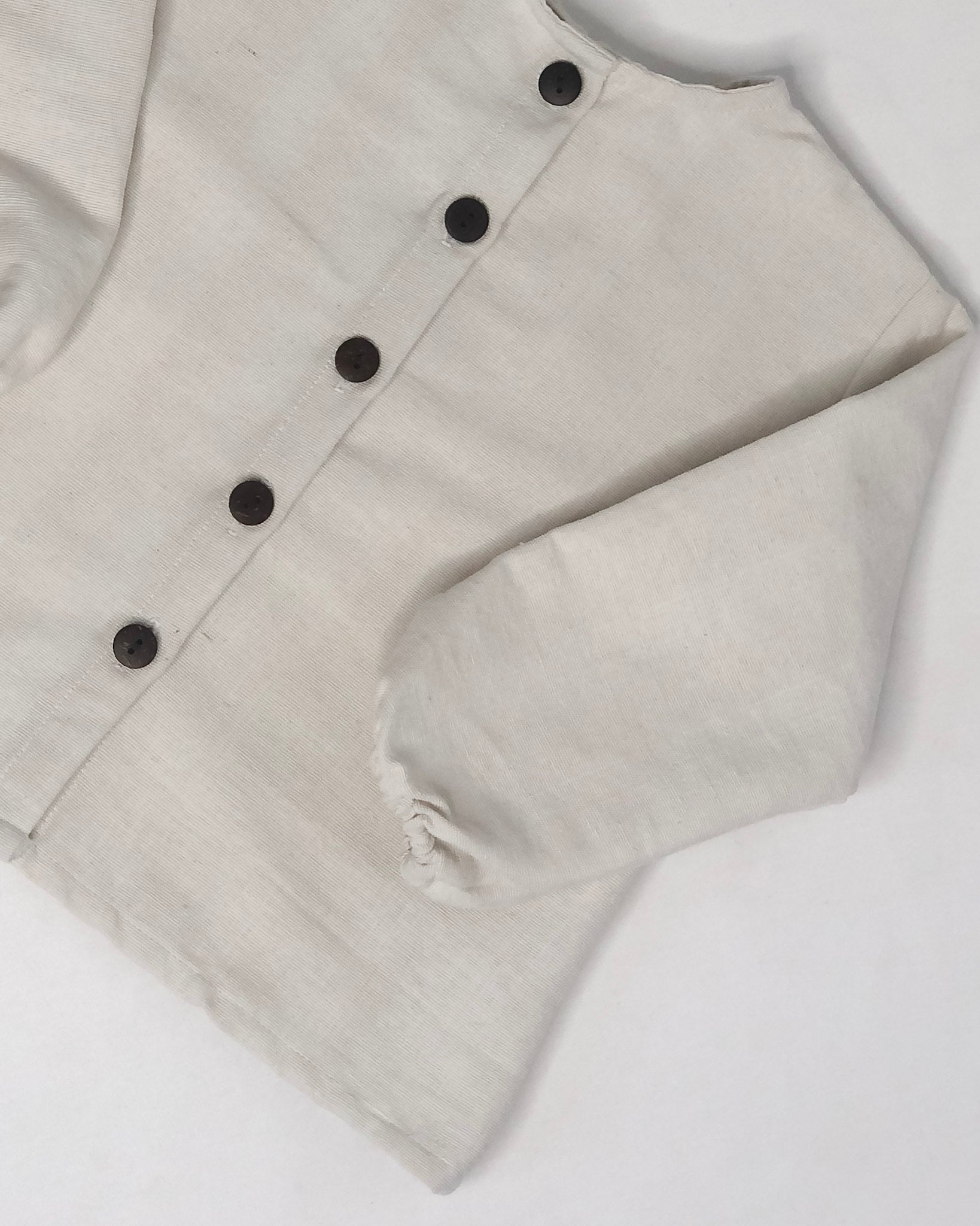 This piece is beautifully made out of un-dyed handwoven cotton. It has a raw texture and little imperfections which makes each piece special and unique.