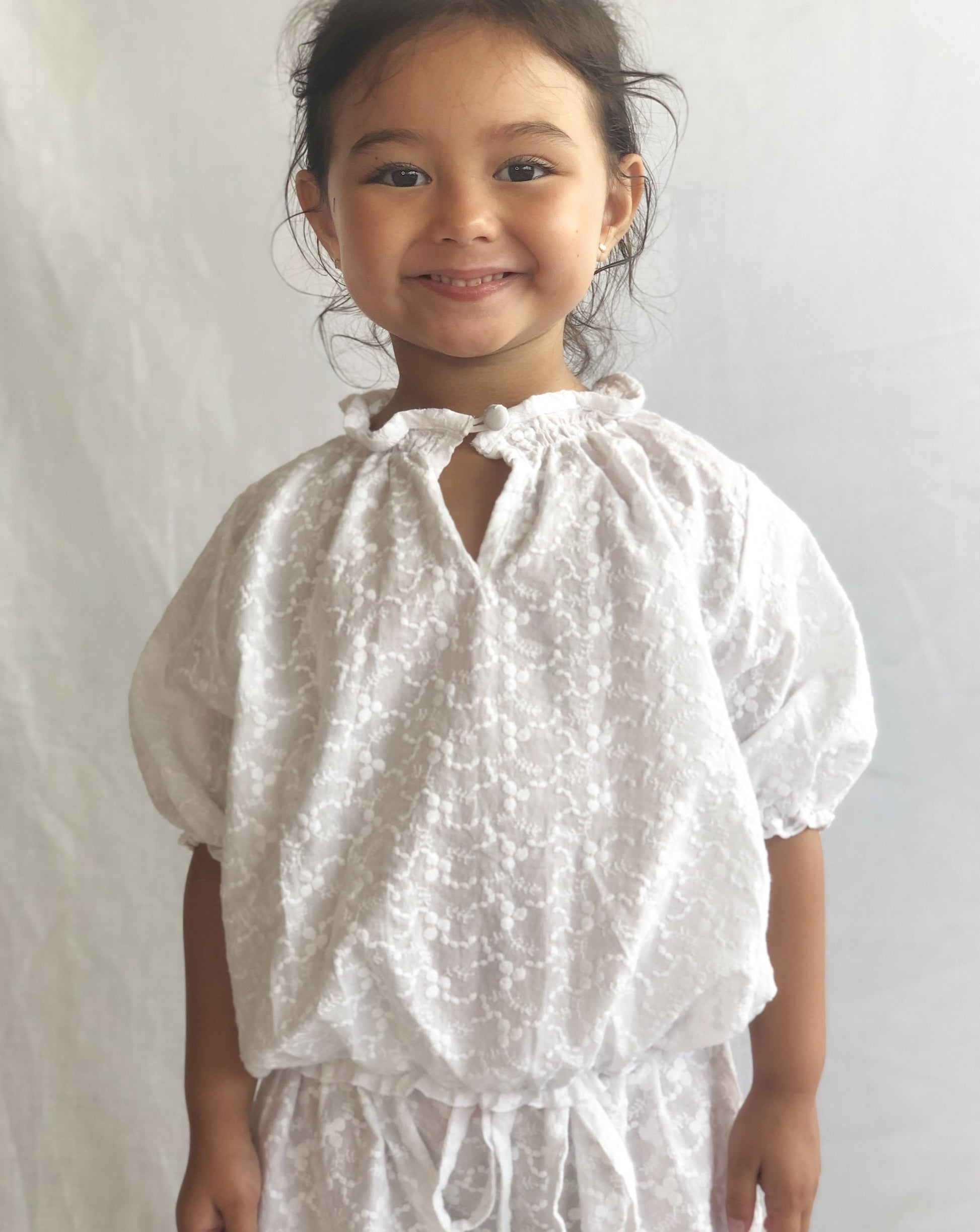 A beautiful lightweight oversized 'broderie anglaise' top that is effortlessly versatile and timeless. A sweet piece that can be worn as your little one grows.
