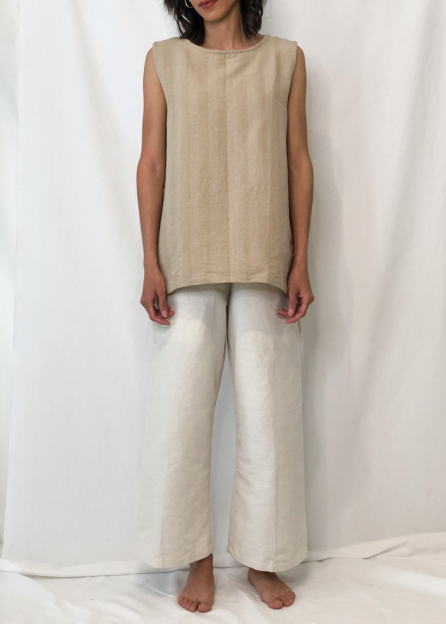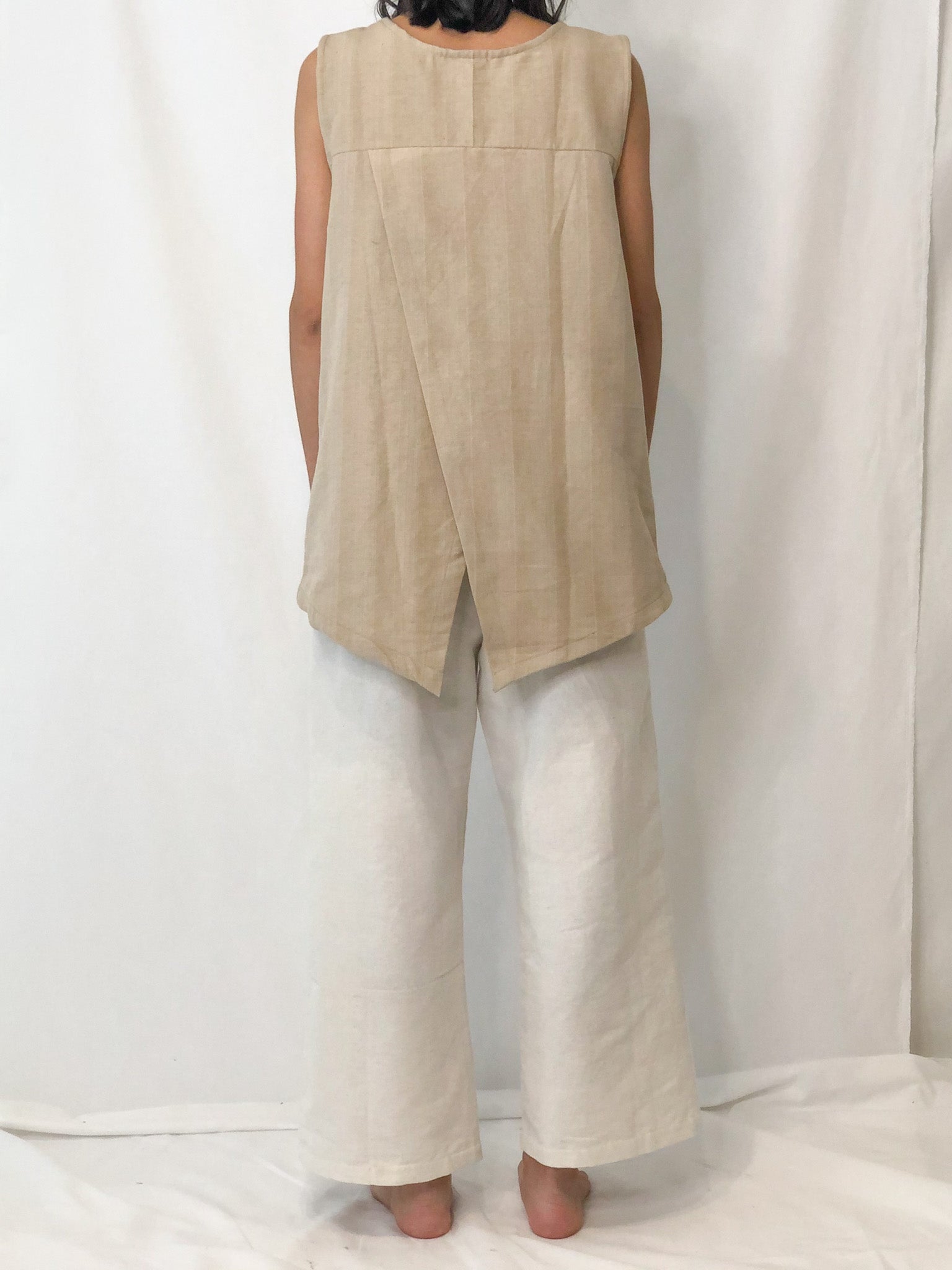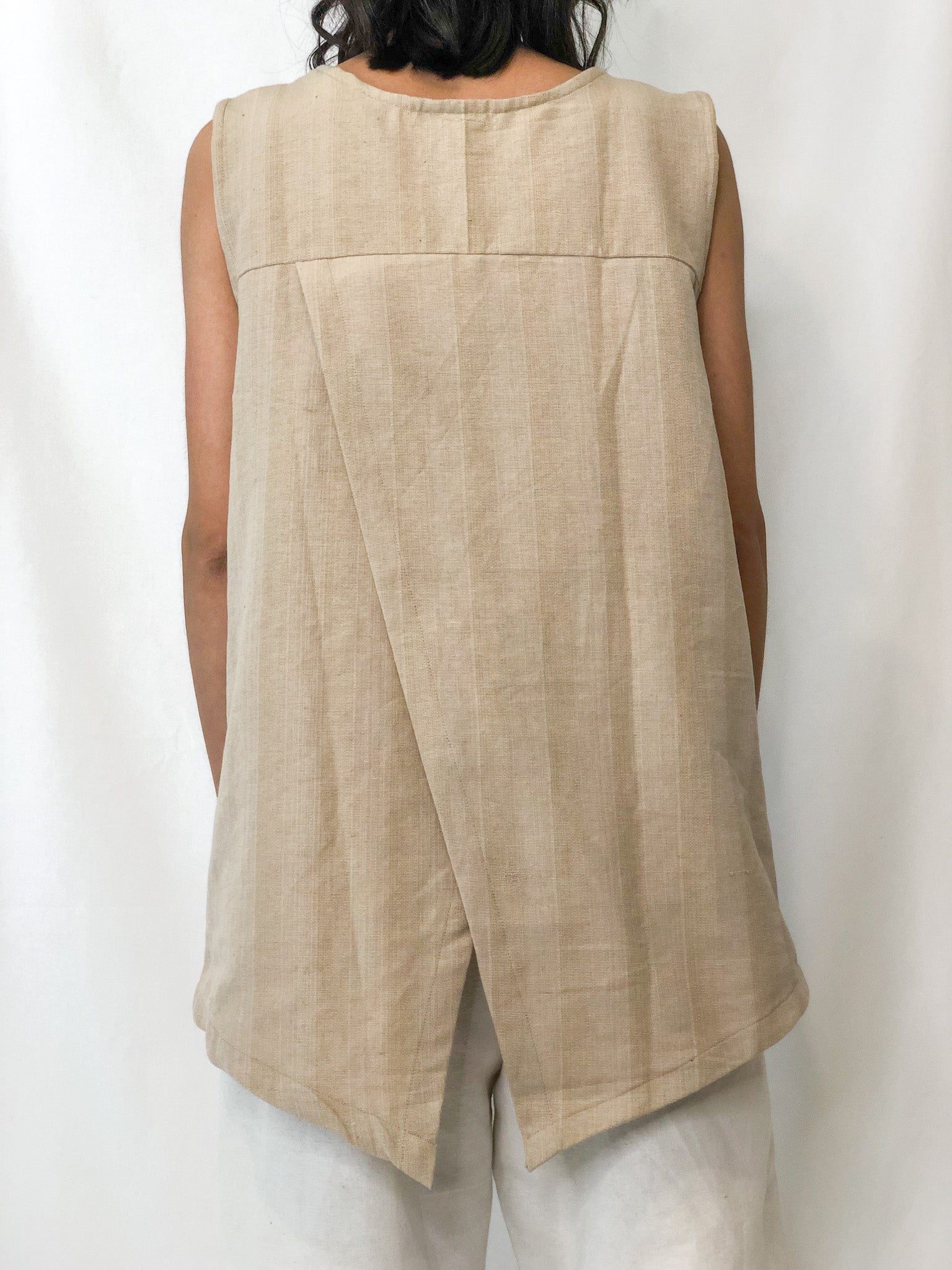 A versatile sleeveless top that can be worn two ways; split at the back or split at the front to enable easy breastfeeding.