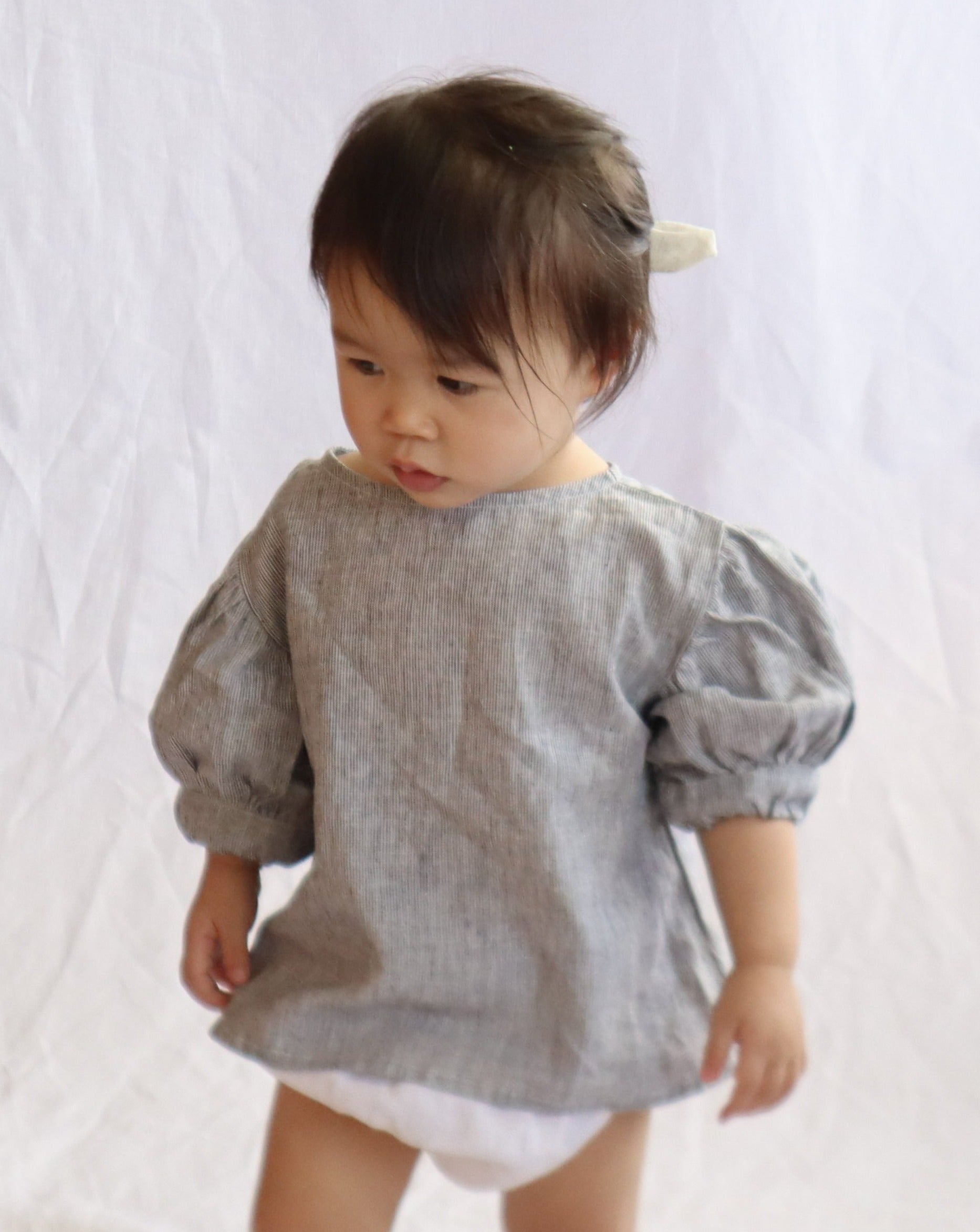Puffy sleeves top with coconut shell buttons, which can be worn in 2 ways. Buttons at the front or back.