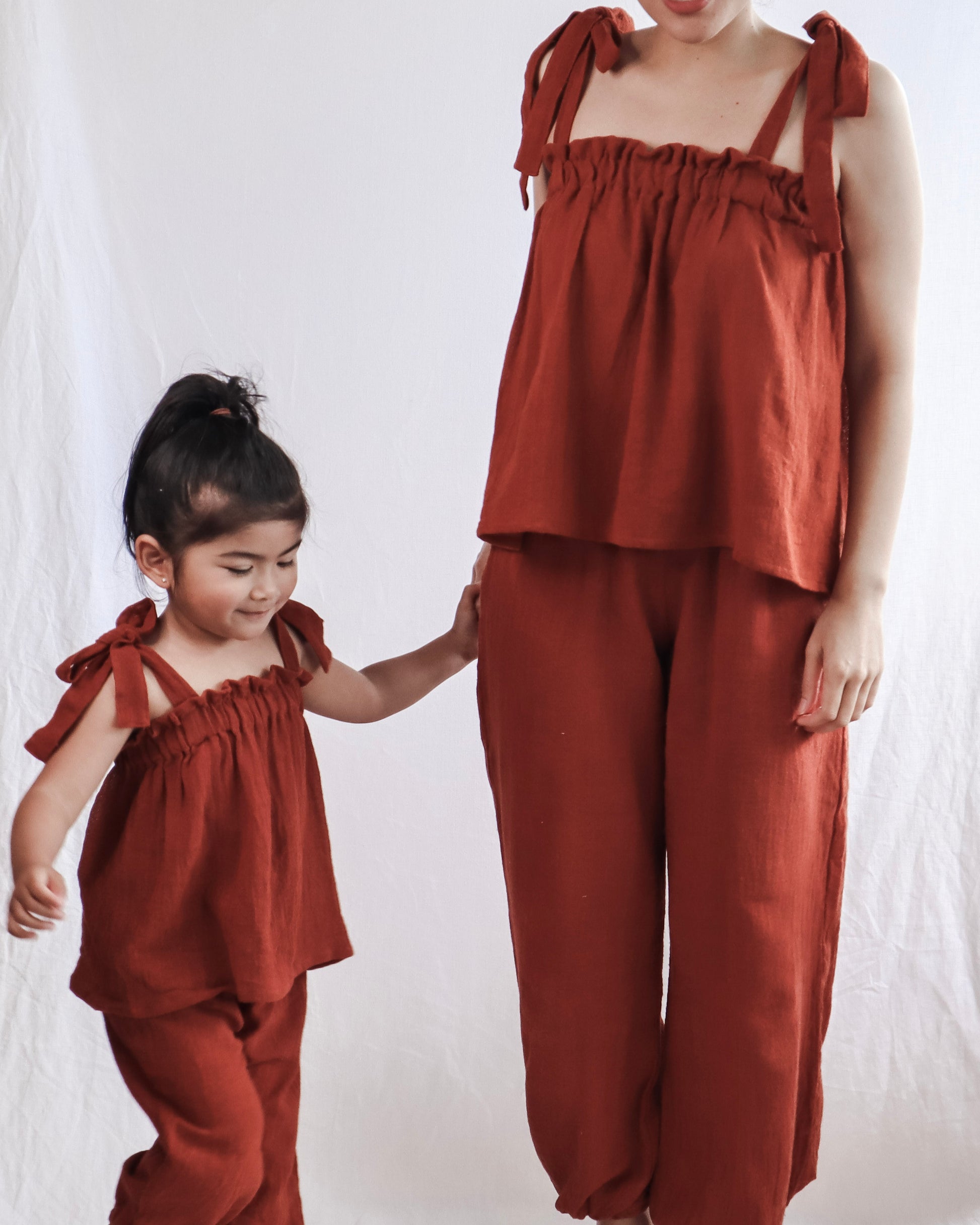 A relaxed and loose fitting gathered linen top, featuring adjustable shoulder ties for your comfort. This beautiful piece is consciously designed to be worn relaxed for a comfortable fit.