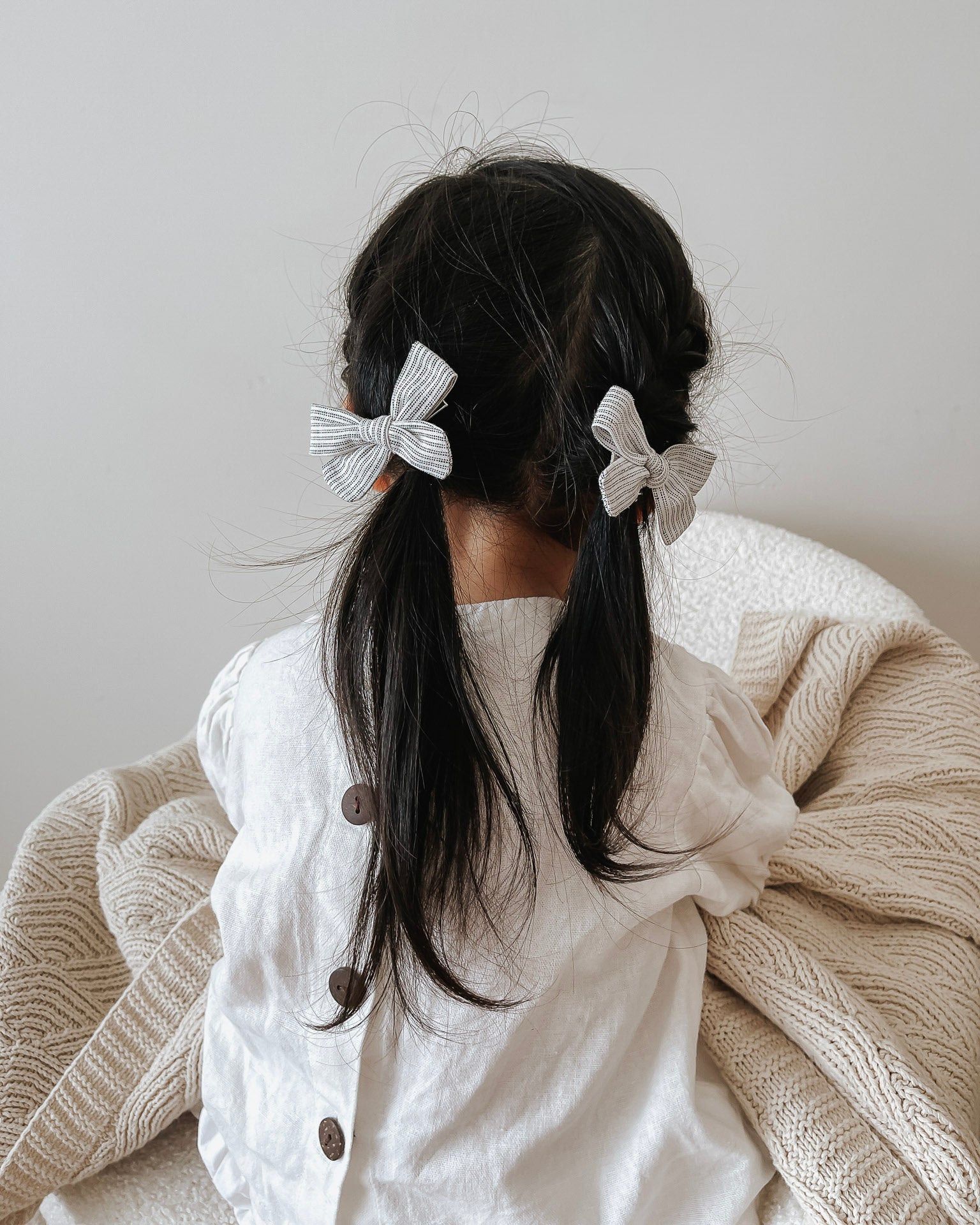 Each bow is hand cut, sewn, pressed, and tied with great care & attention to detail. Bows are secured to your choice of nylon headband or alligator clip. Our headbands are buttery soft, perfect for a newborn, yet stretchy enough to comfortably fit a child; the perfect headband to grow with your little one that will last through the years.